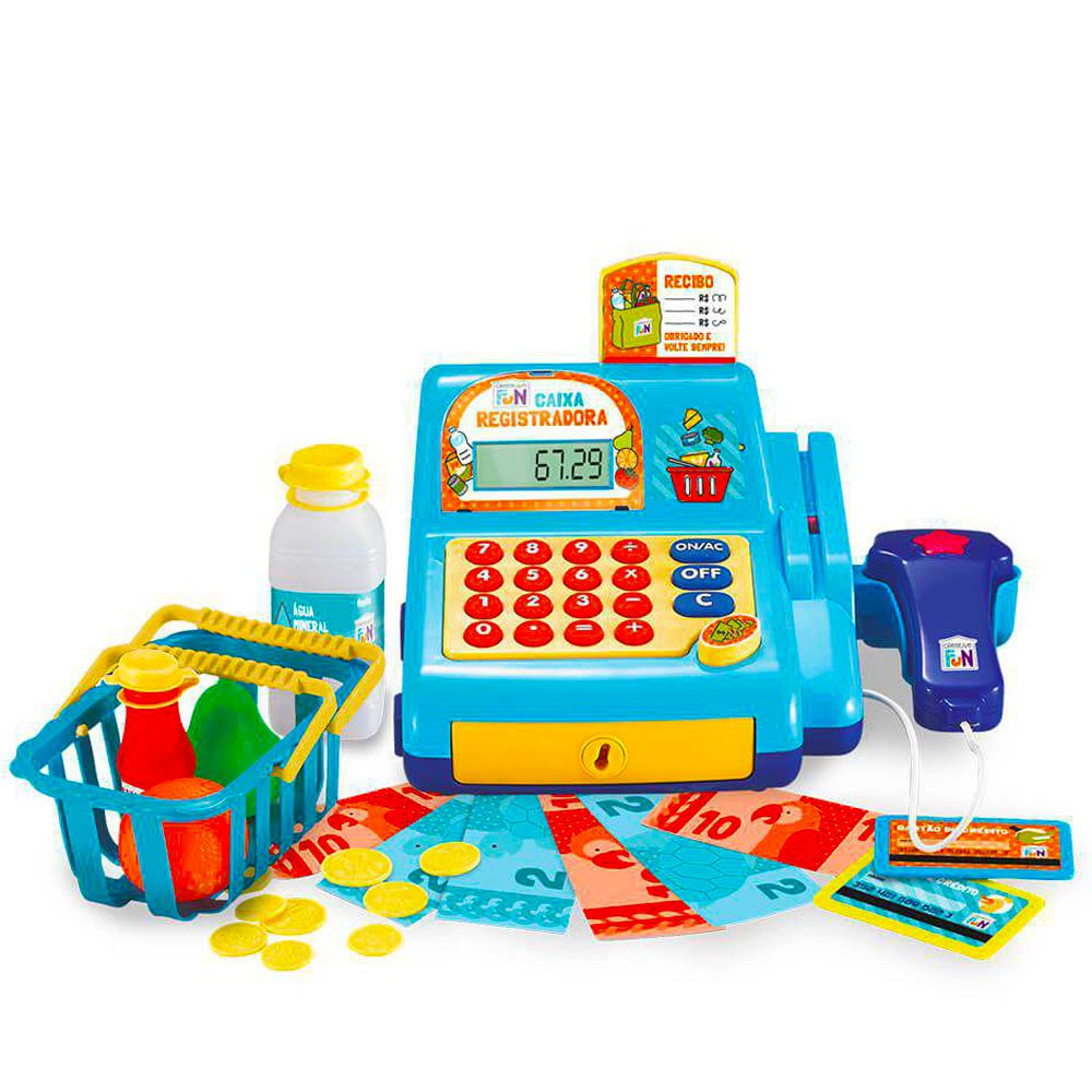 Com a nova caixa registradora Infantil seu filho vai aprender finanças se divertindo. Com diversos recursos e funções como luz, som, dinehiro, leitor de condigo de barras, que vão deixar qualquer um querendo entrar na brincadeira.