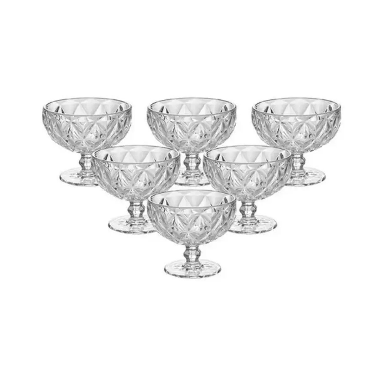 Conjunto de sobremesa para sorvete, gelatina e entre outras delicias para servir. Feito em vidro com 6 peças por kit. As taças de sobremesa têm design inovador e elegante para deixar seus doces bem mais bonitos e gostosos para toda a sua família.