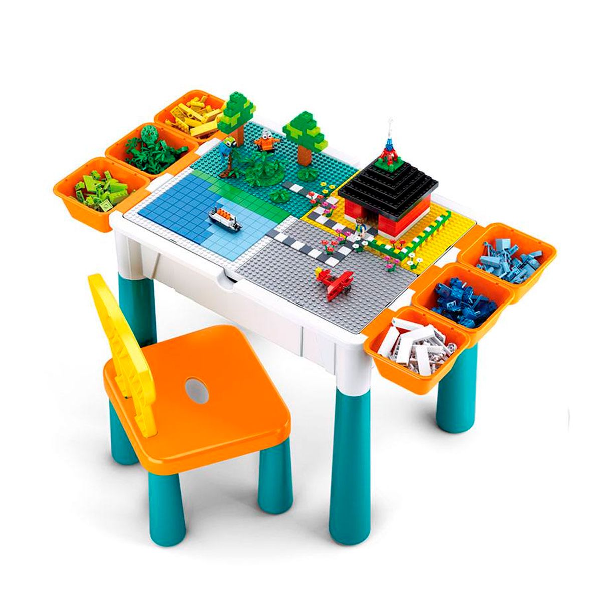 - O conjunto inclui 166 peças de blocos de montar para soltar a criatividade e criar várias esculturas utilizando a base para blocos de montar e para manter a organização você pode utilizar as 6 bandejas que se acoplam na mesa