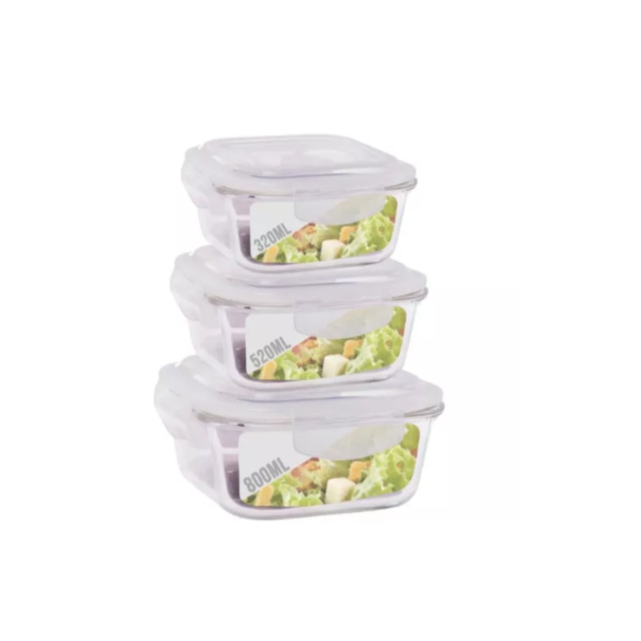 Conjunto 3 Pote Vidro Hermético 3 Tamanho Marmita Kit Quadra