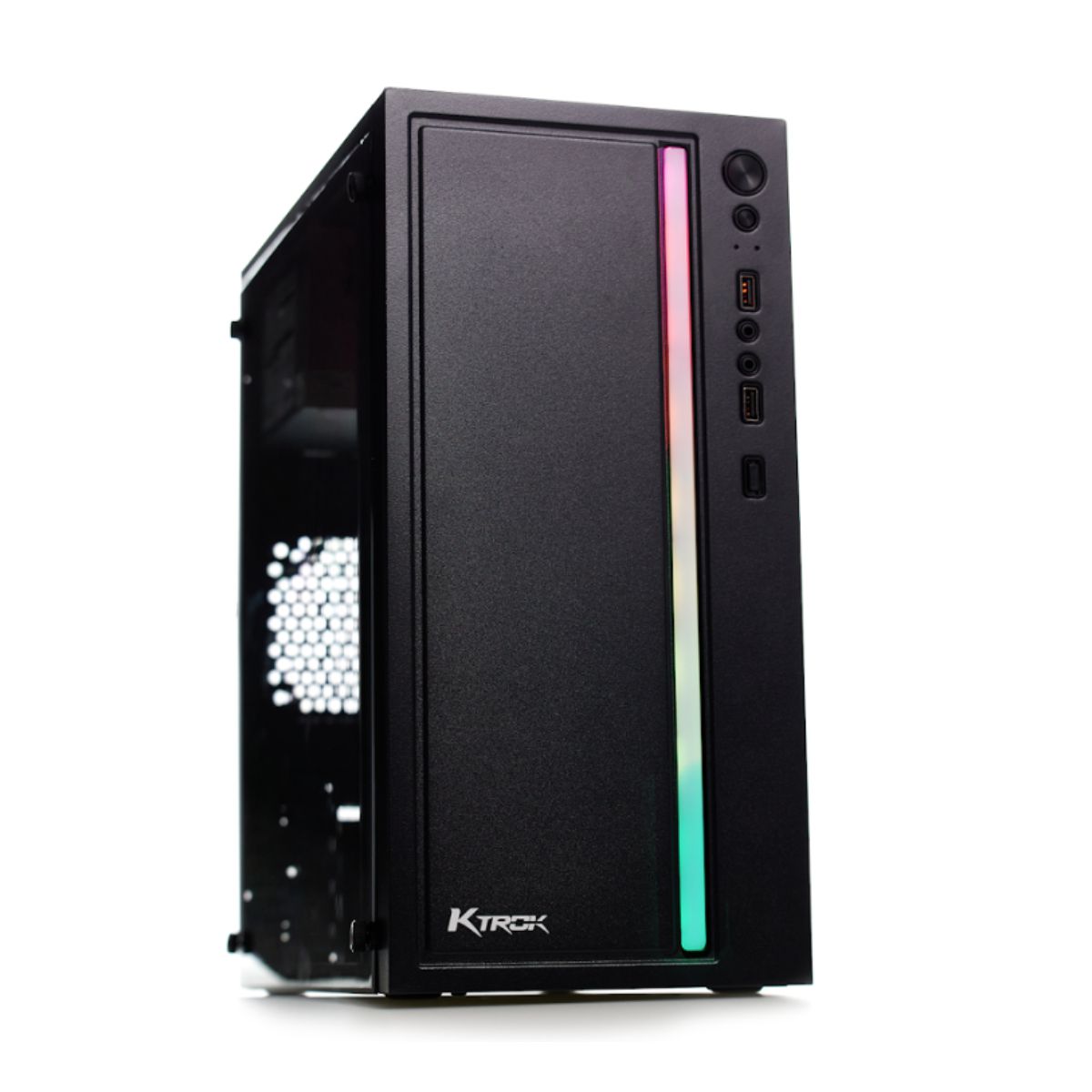 Gabinete Gamer Ktrok KT12 lançamento com Fita Led Frontal, ideal para quem esta á procura do melhor custo x benefício do mercado. O espaço interno é compatível com as Placas-mãe: M-ATX/MINI-ITX. 2* USB 1.0 AUDIO. Possui espaço para 2*3.5 HDD 1*1 2.5 SSD. Garanta já o seu!