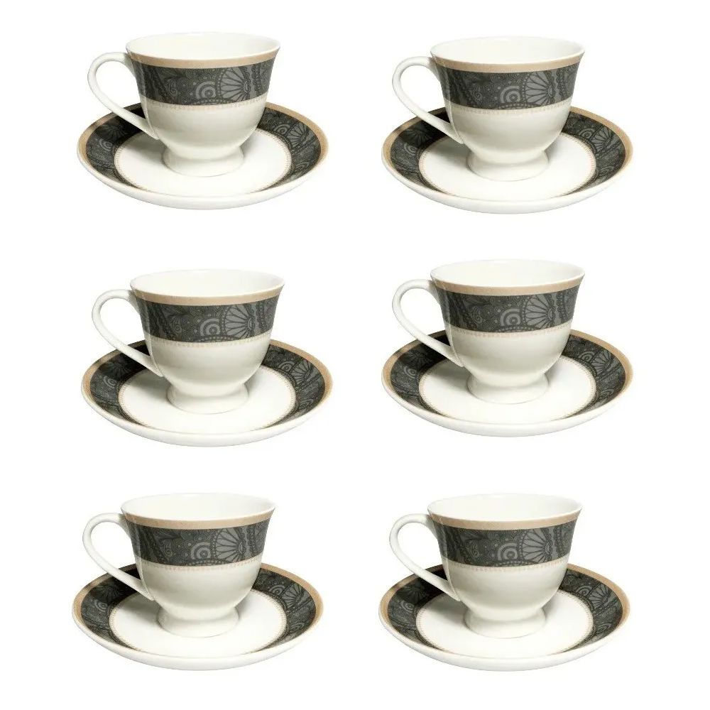 Jogo 6 Xicaras De Porcelana Para Presente Com Pires Turquia