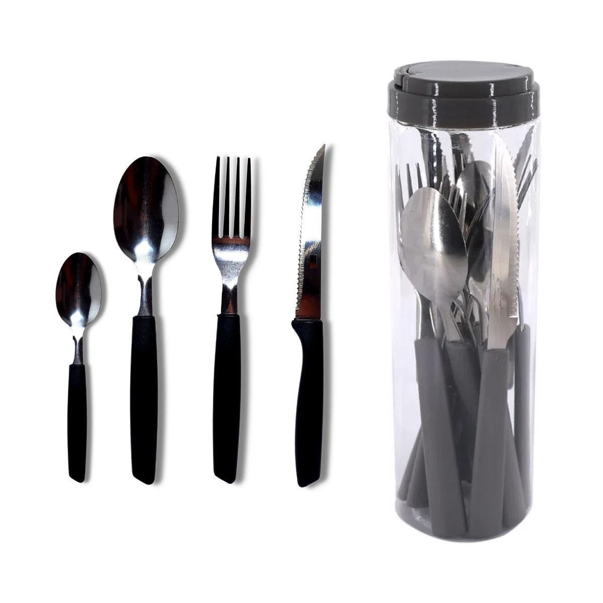 Garanta uma mesa muito mais prática e bonita, com Lâminas em Aço Inox e Cabos de Polipropileno com Pote Plástico de 24 Peças.