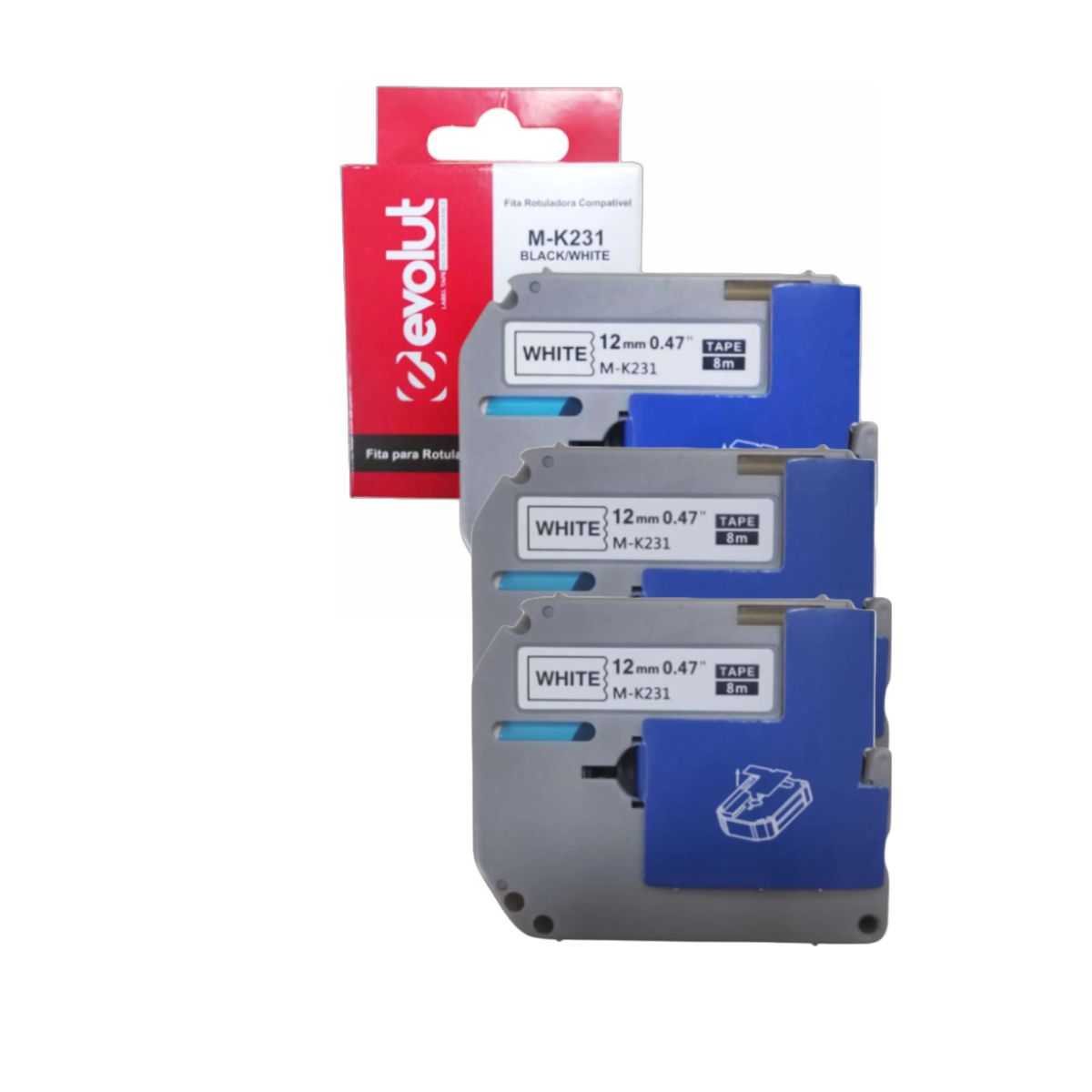 Kit 3 Fitas Rotuladora Brother MK231 Compatível PT45 PT-55