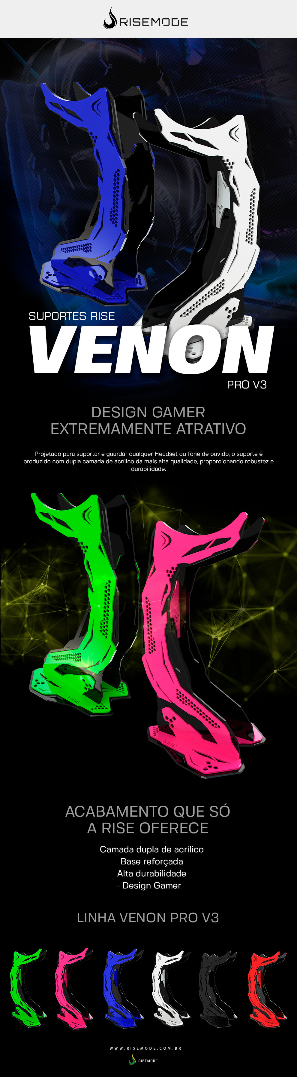 - Modelo: SUPORTE HEADSET RISE MODE GAMER - VENON PRO V3